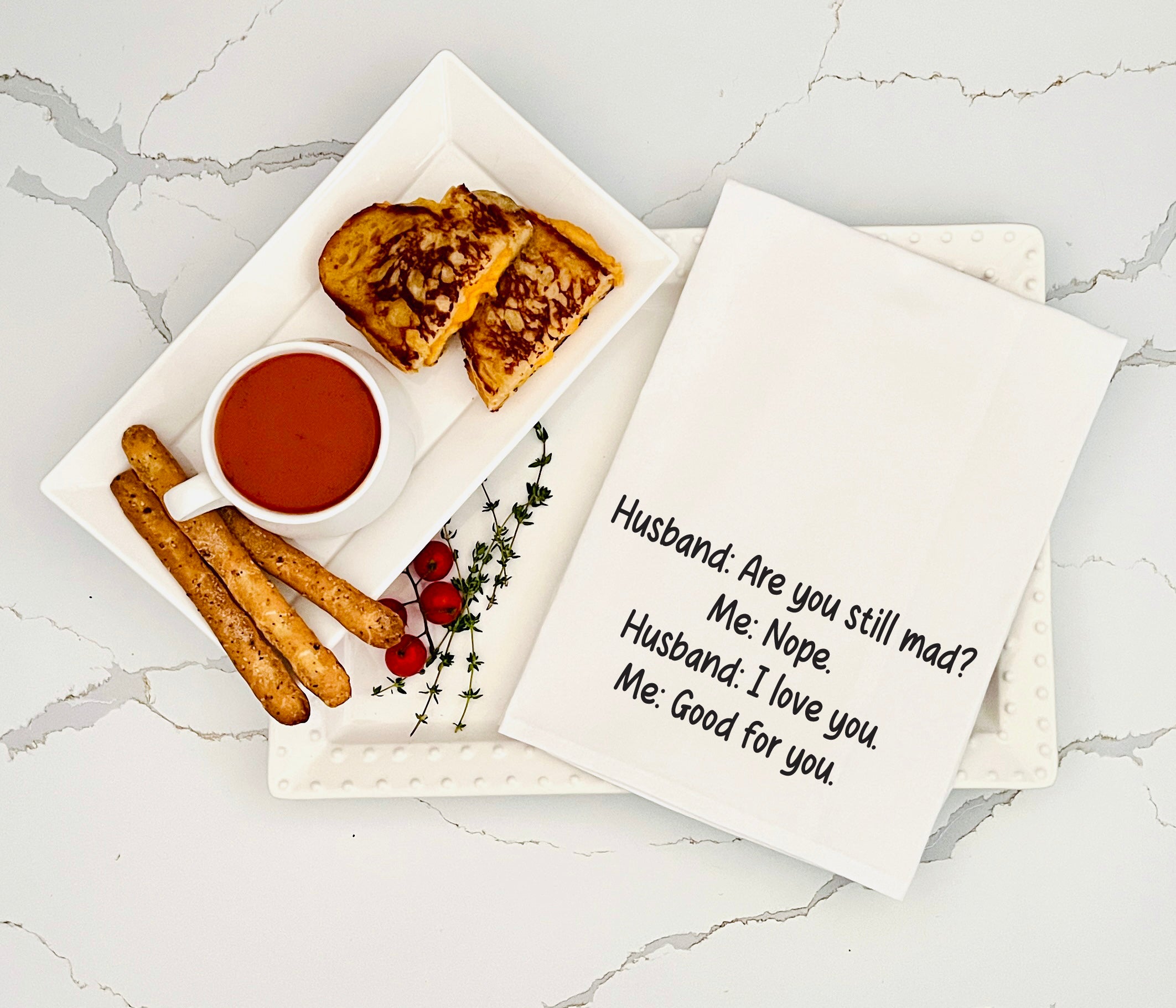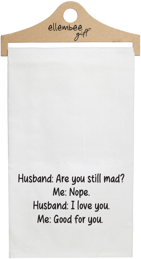 White Husband: are you still mad? Me: nope. Husband: I love you. Me: Good for you kitchen tea towel with hanger