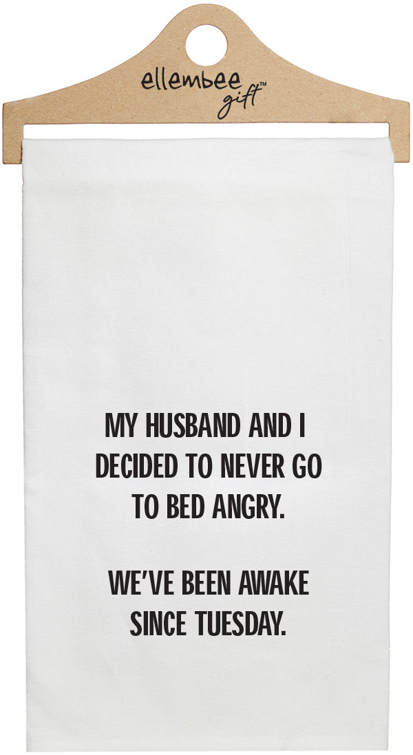White My husband and I decided never to go to bed angry. We've been awake since Tuesday kitchen tea towel with hanger