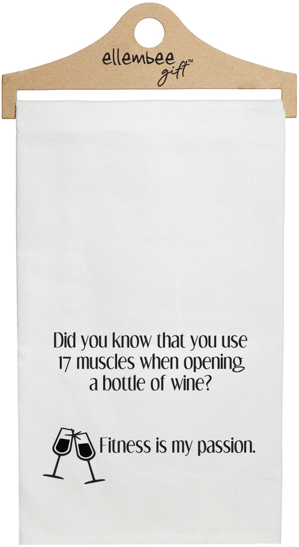 White Did you know that you use 17 muscles when opening a bottle of wine? Fitness is my passion. kitchen tea towel with hanger