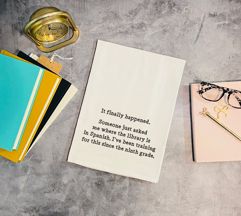 White It finally happened. Someone just asked me where the library was in Spanish. I've been training for this since the ninth grade. kitchen tea towel with hanger