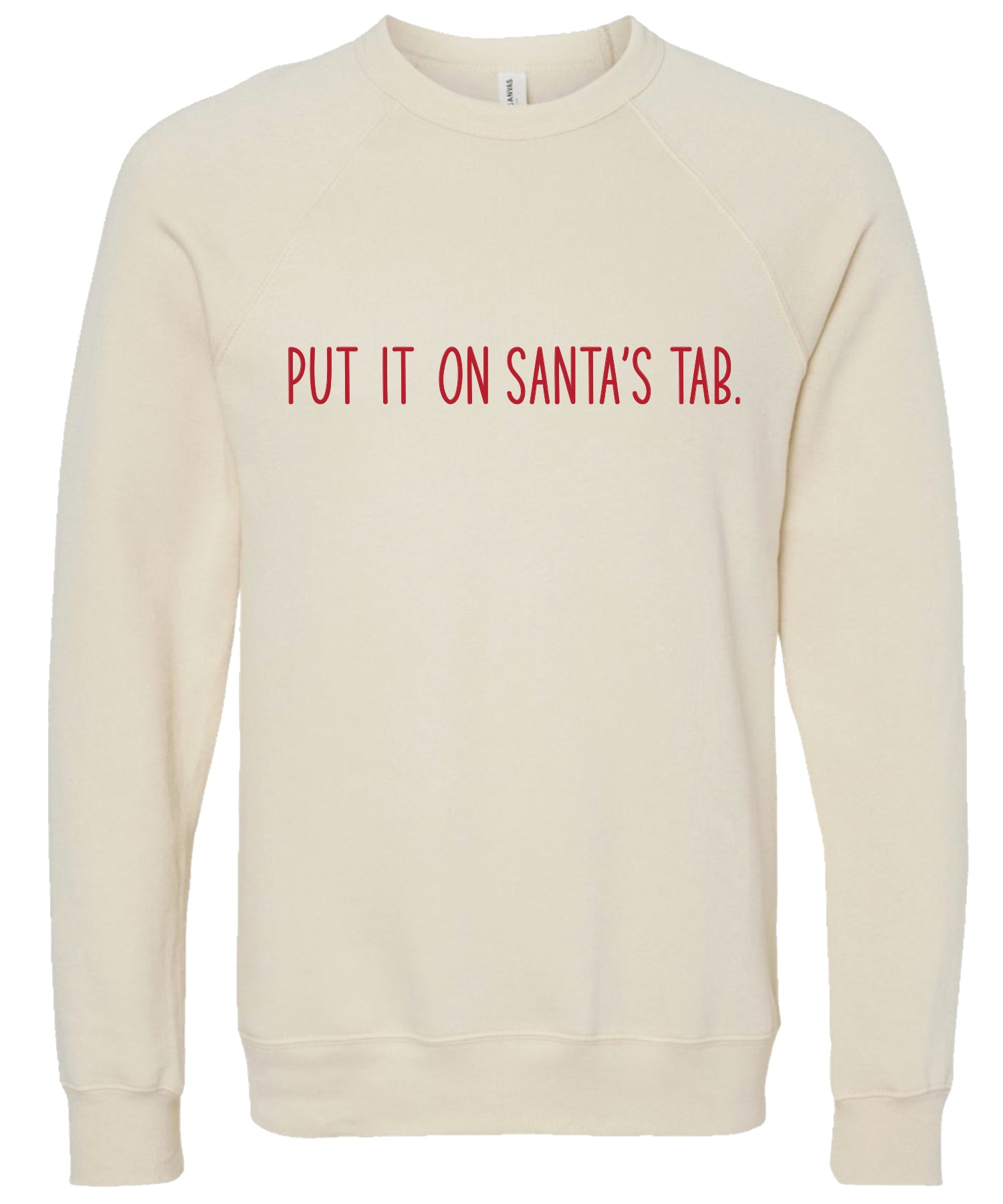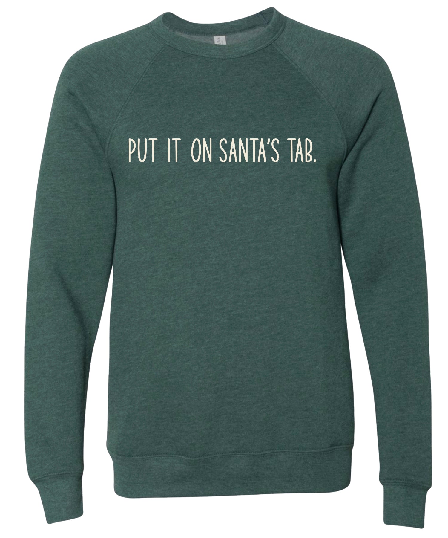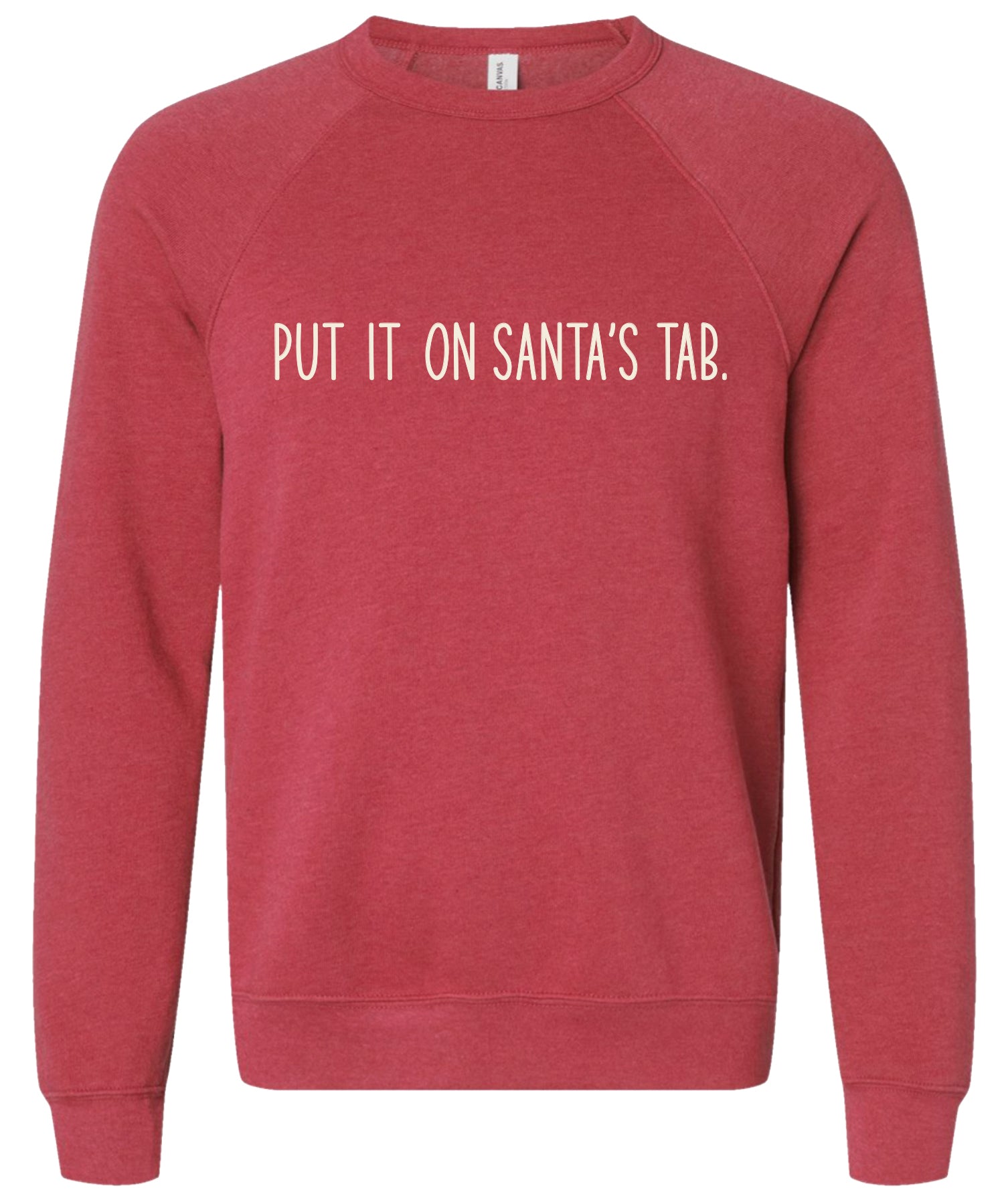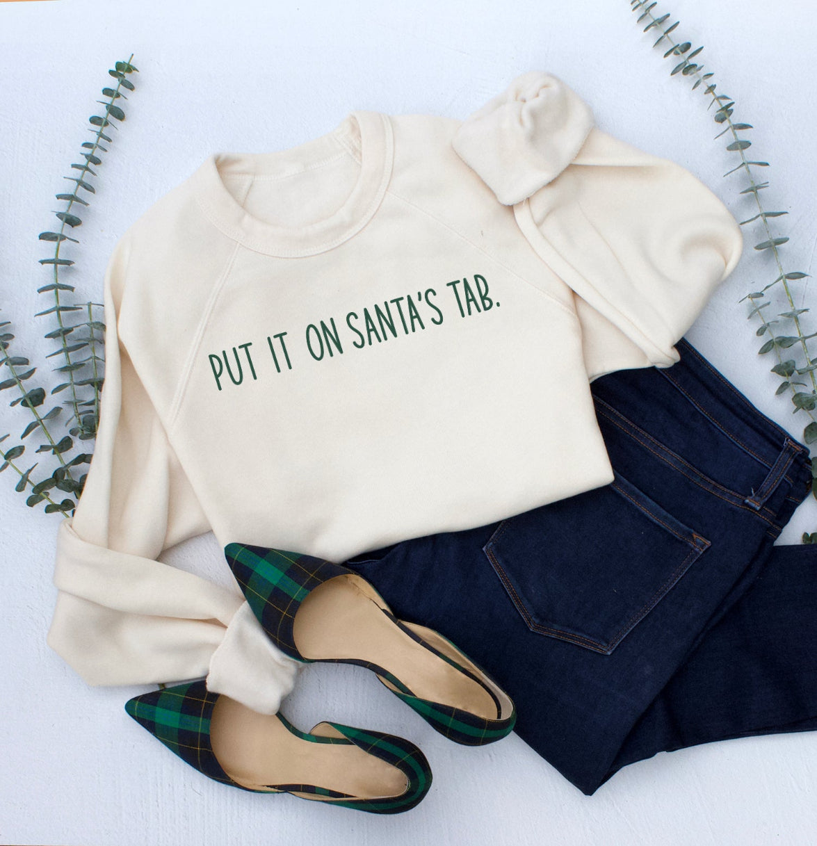 Stay snuggly and cozy all Hallmark-movie-season long with our 'Put it on Santa's tab' sweatshirt!