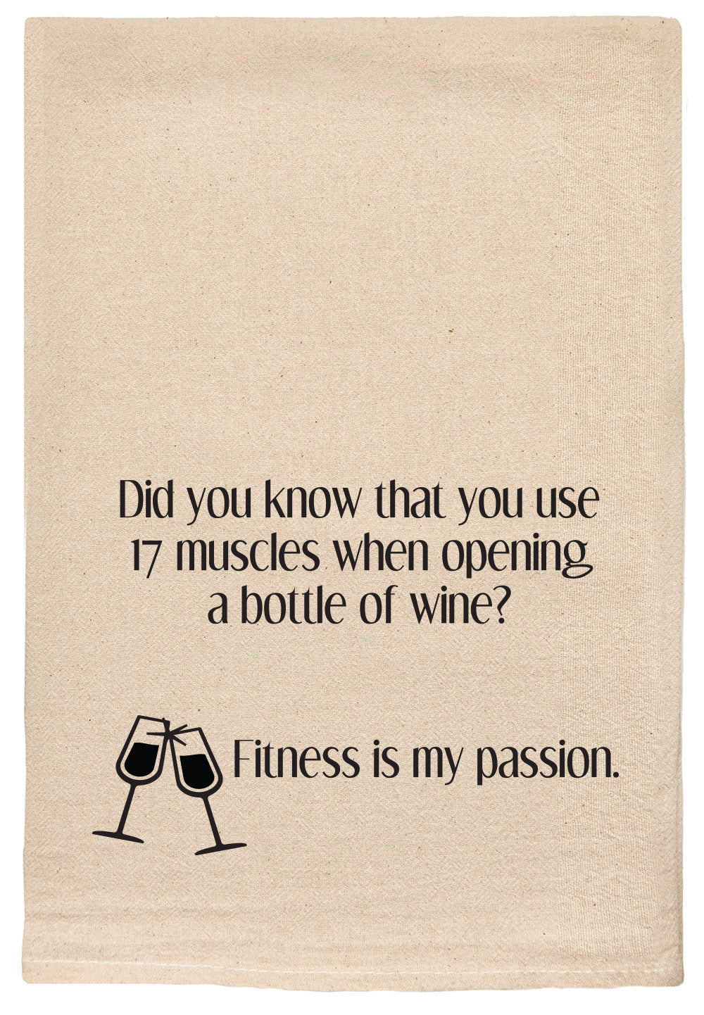 Did you know that you use 17 muscles when opening a bottle of wine? Fitness is my passion. natural kitchen tea towel