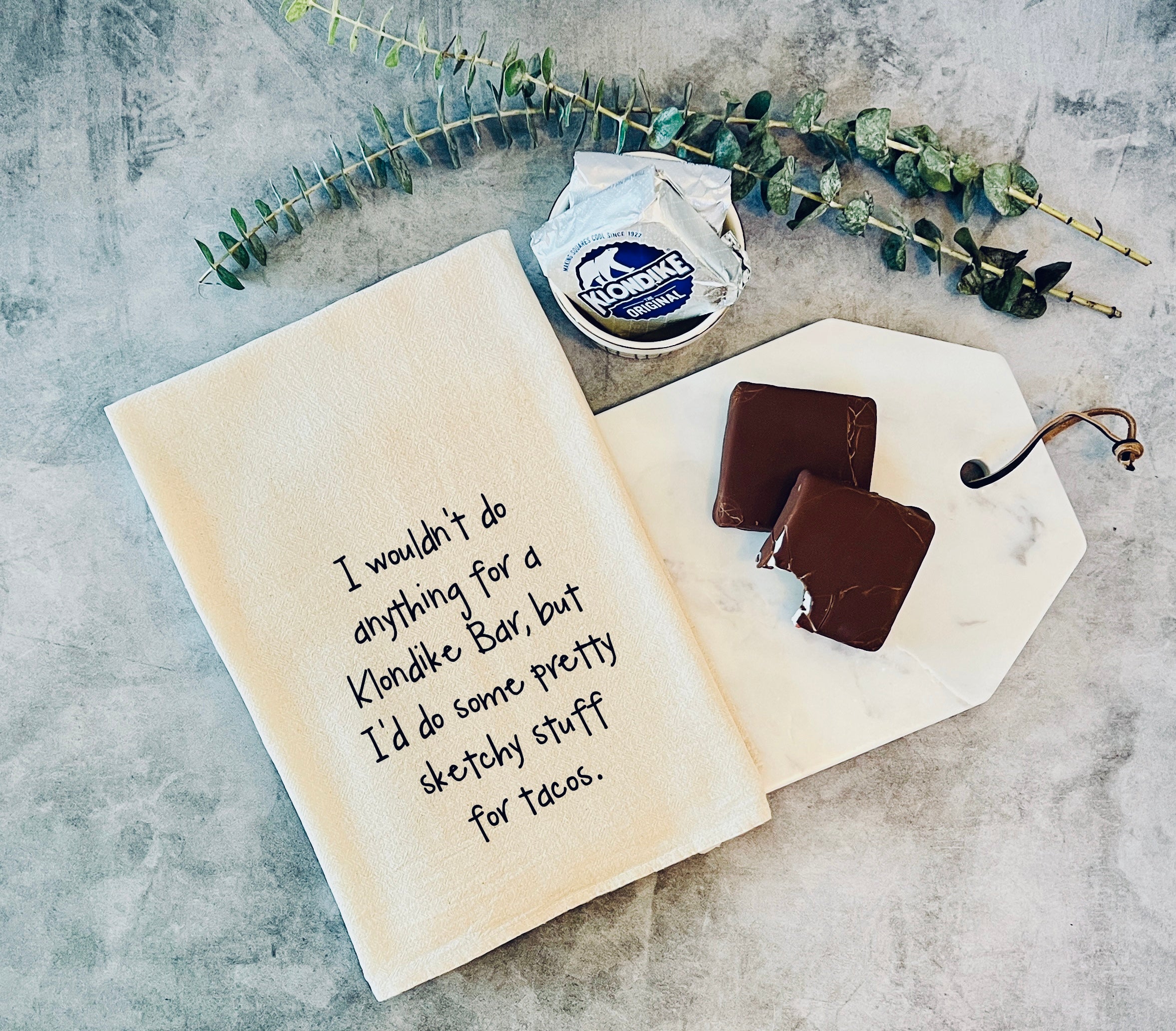 I wouldn't do anything for a Klondike bar, but I'd do some pretty sketchy stuff for tacos - kitchen tea towel