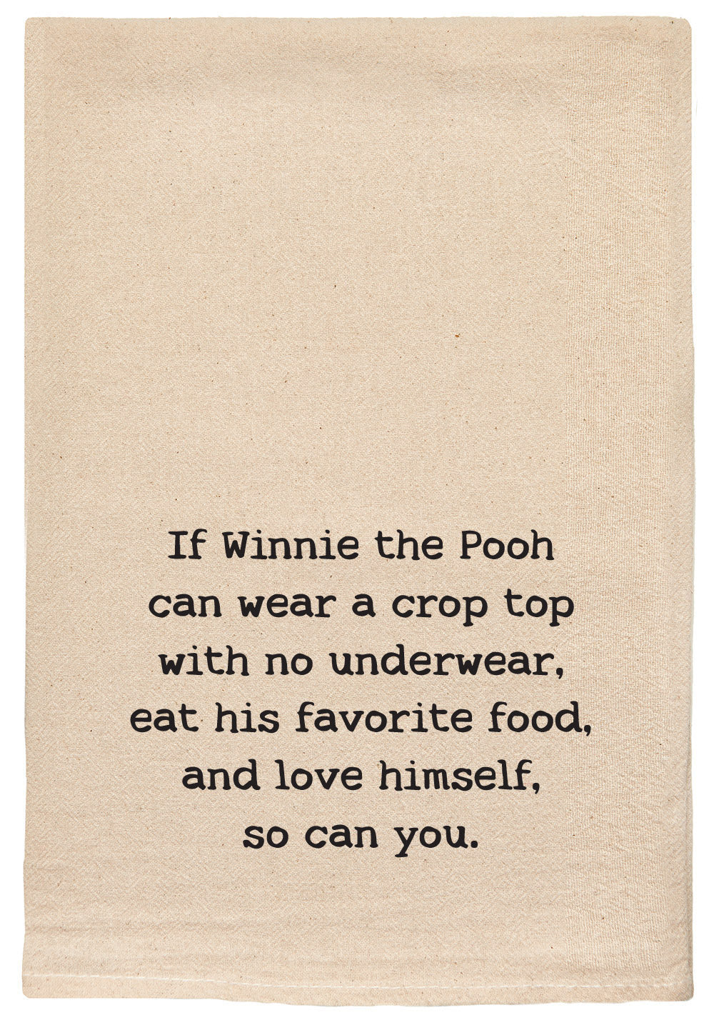 If Winnie the Pooh can wear a crop top with no underwear, eat his favorite food, and love himself, so can you. natural kitchen tea towel