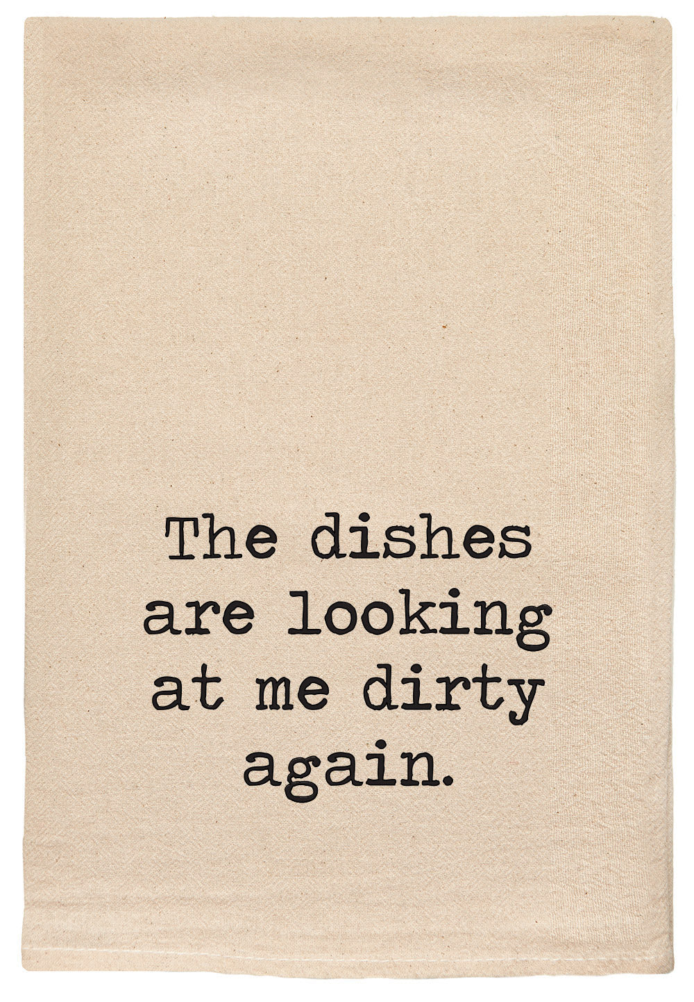Our natural kitchen towels are sewn and printed by hand (by our all female team!) in Michigan from 100% unbleached cotton. They measure approximately 24" x 26" when opened up, can be thrown in the washer and dryer, and are more textured than our white towels.